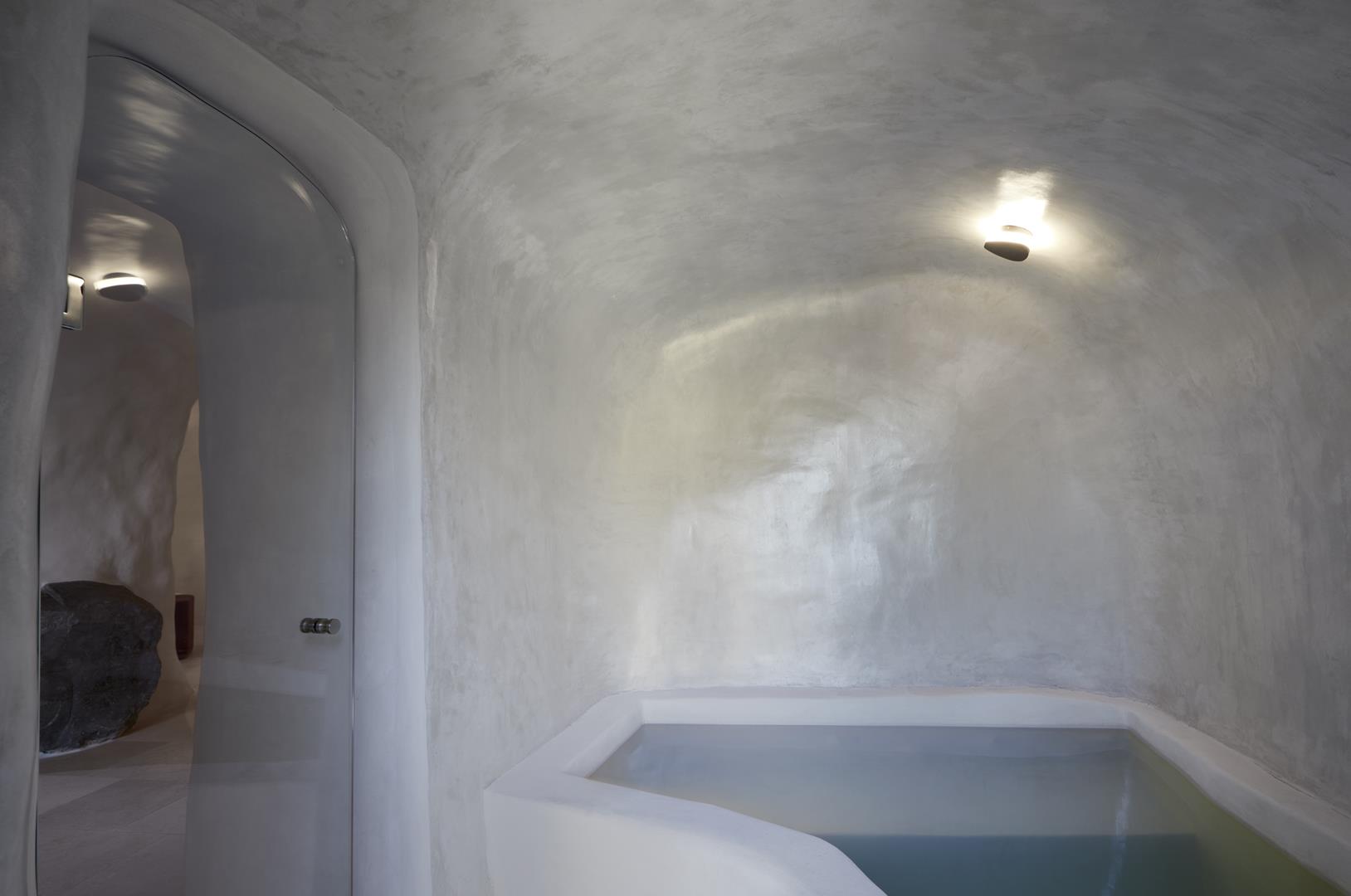 La Suite Junior Athiri, d’une superficie de 60 m², révèle l’esprit authentique d’une maison en grotte, évoquant la sensation d’être en harmonie avec la nature, au cœur même de la Terre mère. La piscine intérieure intégrée et chauffée, d’une superficie de 5 m² et équipée de jets Jacuzzi, combinée au lit king-size intégré confortable et aux équipements luxueux, vous offrira des moments de calme exquis !