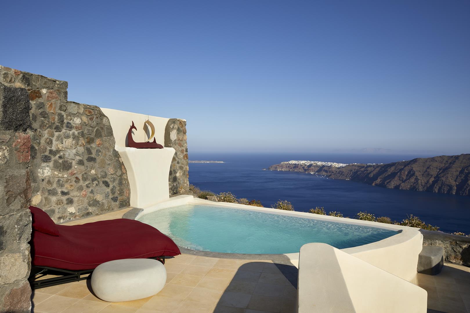 Son luxe subtil se reflète dans le mobilier et les éléments de décoration soigneusement sélectionnés, tandis que sa baignoire autoportante en espace ouvert et son lit king-size intégré promettent des moments de tranquillité intense. Une cave à vins, incluant une variété de grands crus, est à votre disposition pour l’explorer ! À quelques pas seulement, retrouvez-vous à l’« Above Bistro », où vous pourrez vous détendre au bord de la piscine à débordement de Cavalieri et savourer des repas légers ainsi que des boissons rafraîchissantes tout en contemplant la caldera de Santorin et en admirant le coucher de soleil le plus célèbre au monde.