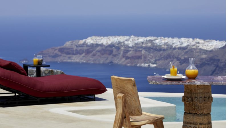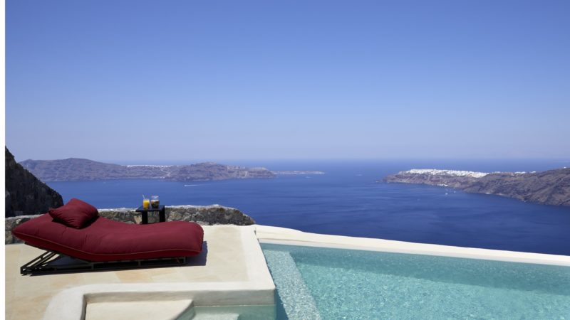 Cavalieros Honeymoon Villa, expanding at a 44 sqm area, dazzles with its magnificent views to the deep blue Caldera waters from its outdoor ultra-spacious terrace. Equipped with a sparkling heated 21sqm pool, sunbeds, and super comfy outdoor furniture, Cavalieros Honeymoon Villa is built on the highest part of the Cavalieri estate, offering extra privacy and the chance to admire the sublime Caldera’s shapes from a 360 panoramic point of view. A wine cellar, including a variety of fine labels, is at your disposal to explore! A few steps away find yourself at ‘Above Bistro’ where you can wind down at Cavalieri’s infinity pool and enjoy breezy drinks and tasty snacks at our lounge bar while gazing at Santorini’s Caldera and admiring the world’s most famous sunset.