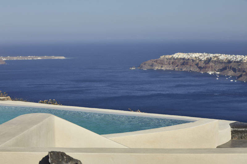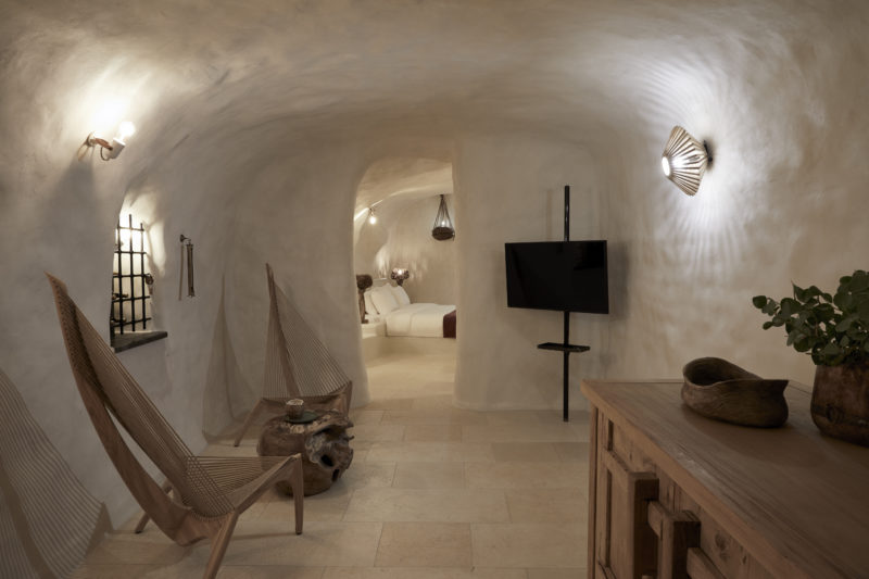 Vinsanto Honeymoon Villa, expanding at a 68 sqm cave layout area, dazzles with its magnificent views to the deep blue Caldera waters from its outdoor terrace. Embracing the unique Cycladic architecture, with a sparkling heated 17sqm pool, sunbeds and stylish outdoor furniture, Vinsanto Honeymoon Villa is perfect for sunbathing and relaxing, with the Aegean Sea and volcano views that take your breath away. Its subtle luxury is reflected in the carefully selected furniture and decoration items, while its free-standing, open space bath tub and king size built-in bed promise moments of intense tranquility. A wine cellar, including a variety of fine labels, is at your disposal to explore! Only a few steps down find yourself at ‘Above Bistro’ where you can wind down at Cavalieri’s infinity pool and enjoy light meals and refreshing beverages while gazing Santorini’s Caldera and admiring the world’s most famous sunset.